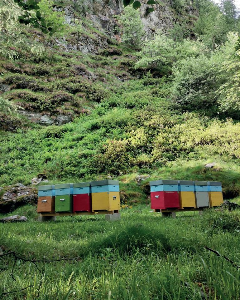 la conduzione aziendale. Attraverso la pratica del nomadismo sul territorio della provincia di Torino, soprattutto nella Val di Susa, nelle Valli di Lan zo, in Canavese e nelle province di Asti e Cuneo, l’Azienda Agricola Valli di Miele produce mieli di qualità uniflorali e multi florali, come Tarassaco, Ciliegio, Acacia, Casta gno, Tiglio, Millefiori di