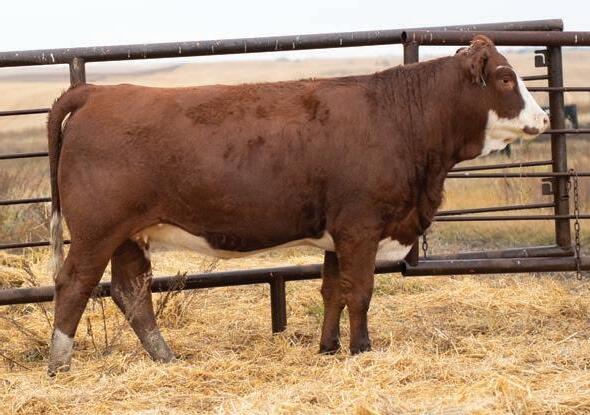 This heifer is from a very productive cow that always brings home a top quality calf. This heifer has everything, length, width and is setting up a good udder.