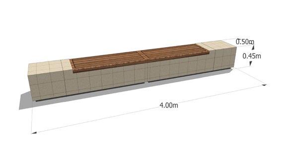 Design intent of marble benches with wooden paneling, as well as wooden benches.(Sketch Up, Auto CAD)
