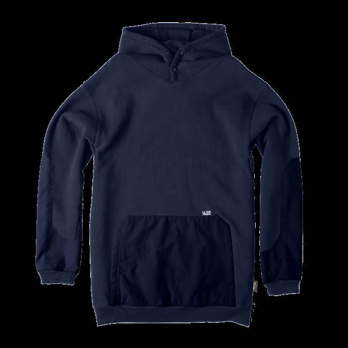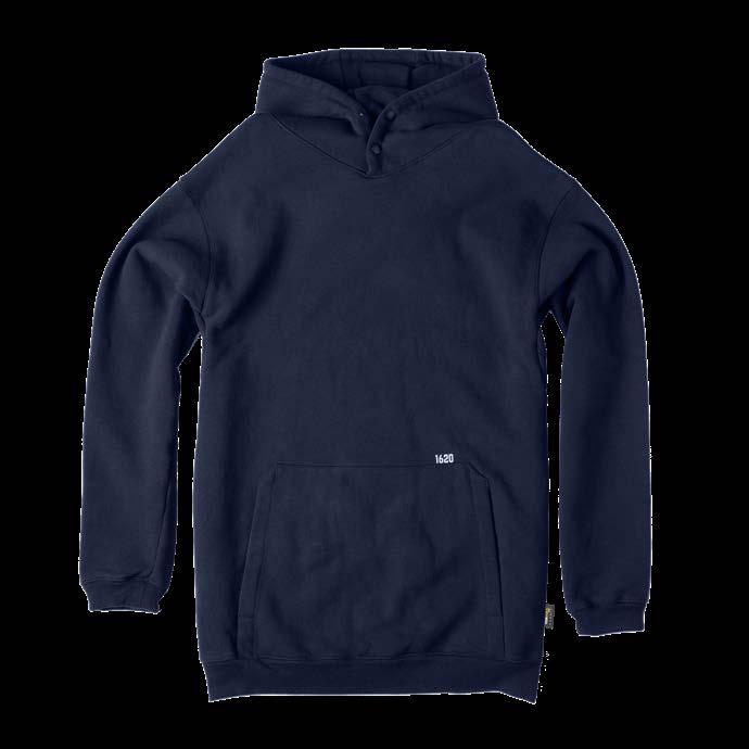 Our basic hoodie has a cult following. The perfect weight, with the same comfort you are used to and our signature fit–long enough to keep you covered while working and manufactured to last with YKK Mil-Spec snaps. A top uniform choice for crews, you cannot beat the quality of this piece. It has been updated with a new kangaroo pocket design as well as all new more durable cuffs.