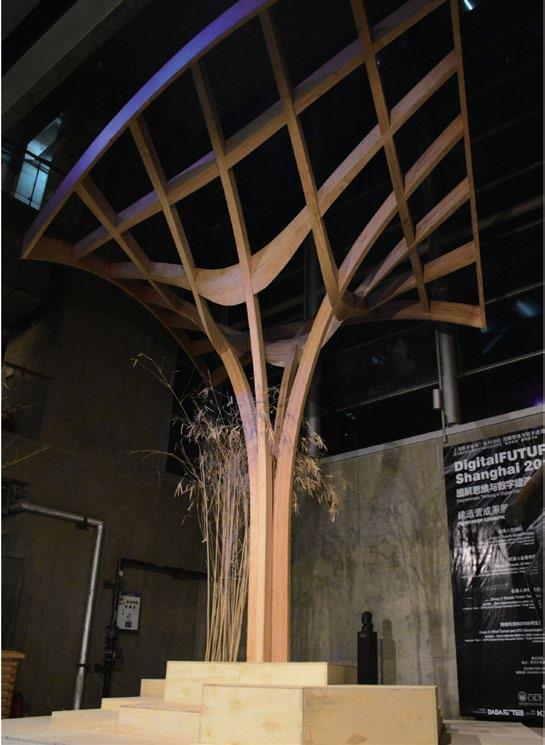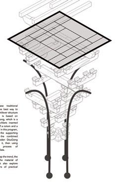 In this project, we designed the load-bearing system using robotic arms to process timber. The geometry was Inspired by DouGong, a system of wooden brachkets inserted between top of colums and crossbeam s in Chinese traditional architecture.