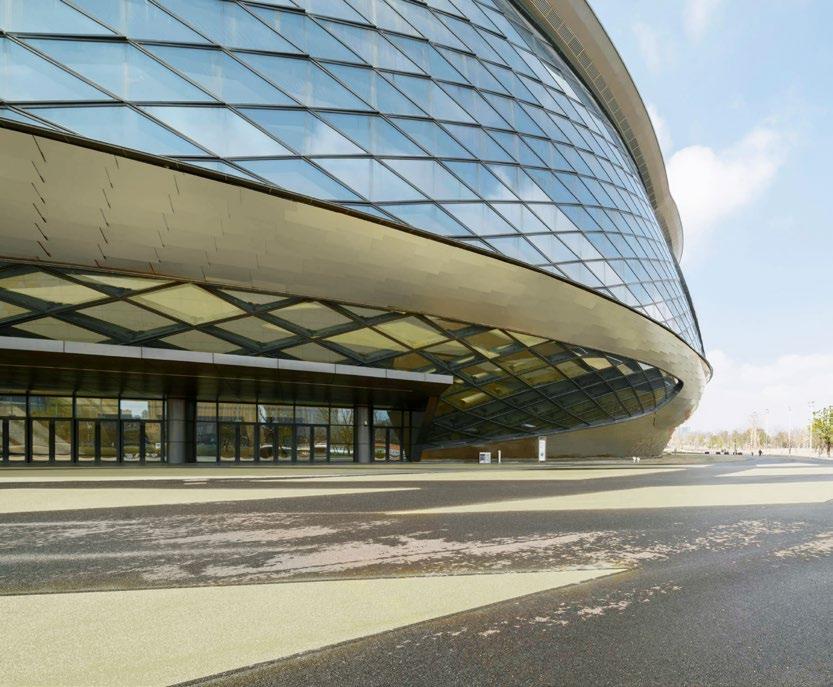 The stadium structures at both ends of the park are connected by a sunken Valley Village mall, an undulating commercial spine with shops, restaurants, kiosks and underground parking, crossing below the existing Yiyang Road and River. This fluid and natural connection between various programs guarantees not only the seamless circulation during the Asian Games, but also the future success of the project as a lively and active urban space.