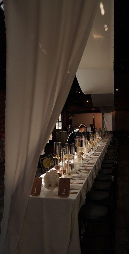 Inheirting the gene from the venue, a former Brooklyn warehouse, we carried the architectural form into the space design. The order was introduced by the hanging drapery and refactory table.