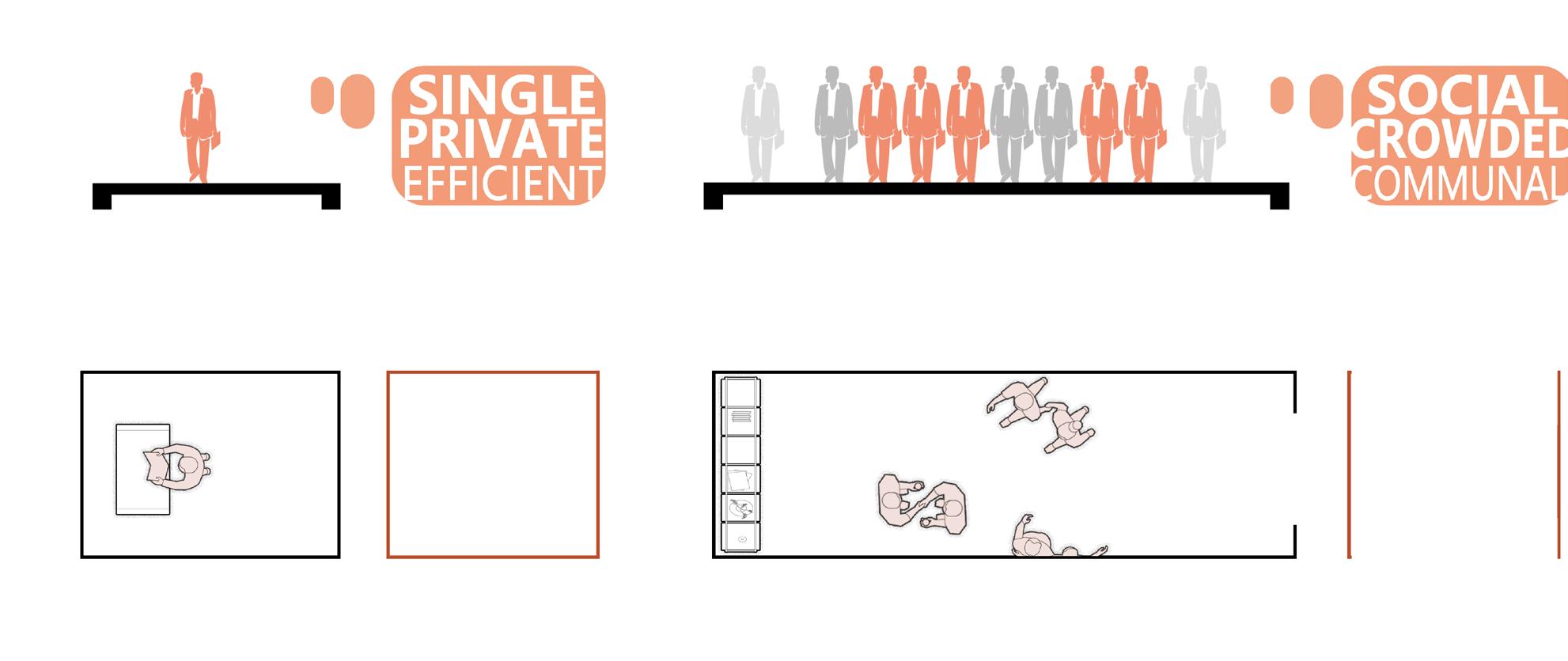 For 2-5 people For 10+ people BACKGROUND | growing demand for in certain spaces SURVEY ANALYSIS | Usage frequency for different space Commuting In Cities CONCEPTION | storage box for flexible space Reflections on current issues living private/fixed public/flexible study dining shopping sports celebration TIME/TYPE working study dining relaxation Private space Public space privacy indicates fixed and limits regular diverse needs SPACE MORE FOCUS SPACE MORE CHANGES socialization indicates flexible space and more possibilities scattered space centralized space pack up storage furniture - space fixed flexible ? CITY