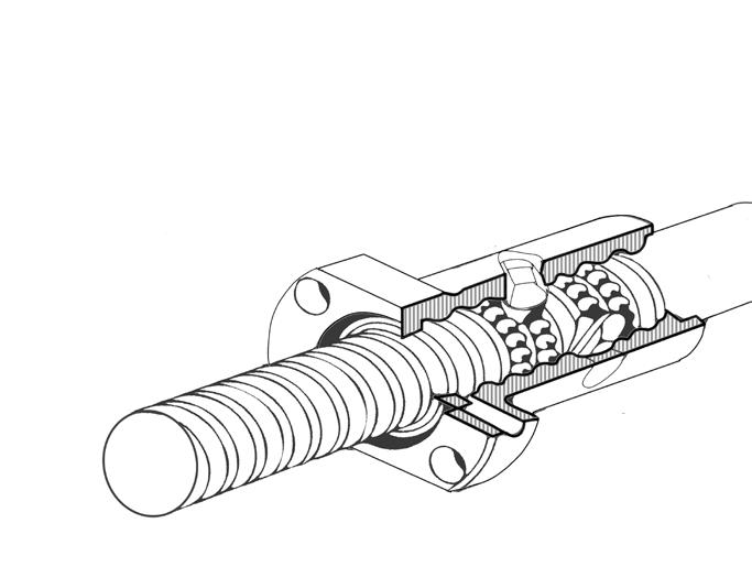The ball rolls in the spiral raceway, converting rotary motion to linear motion with little friction resistance.