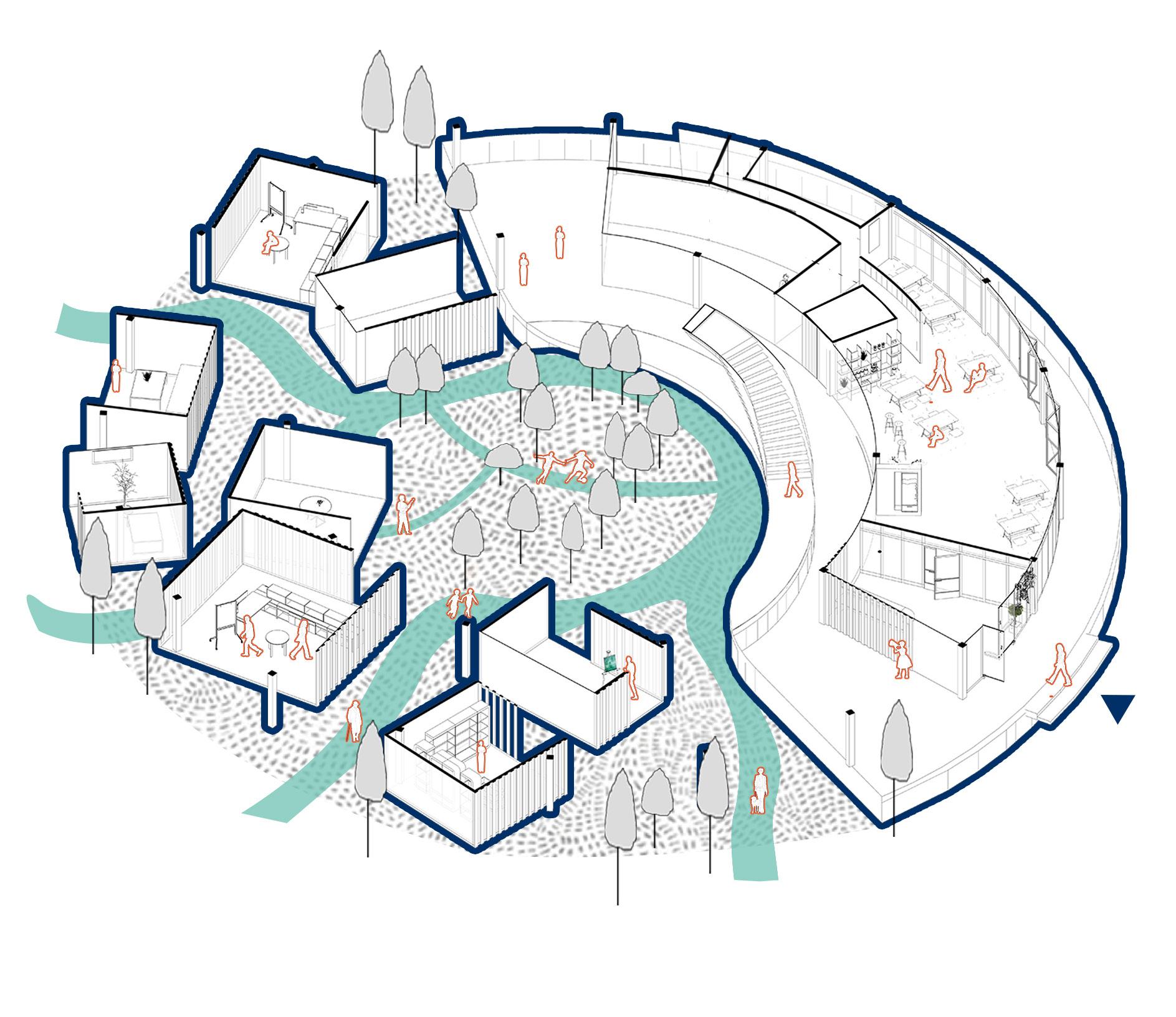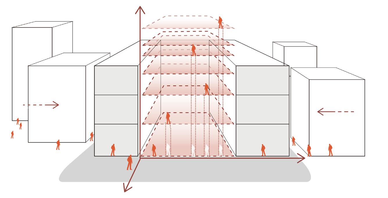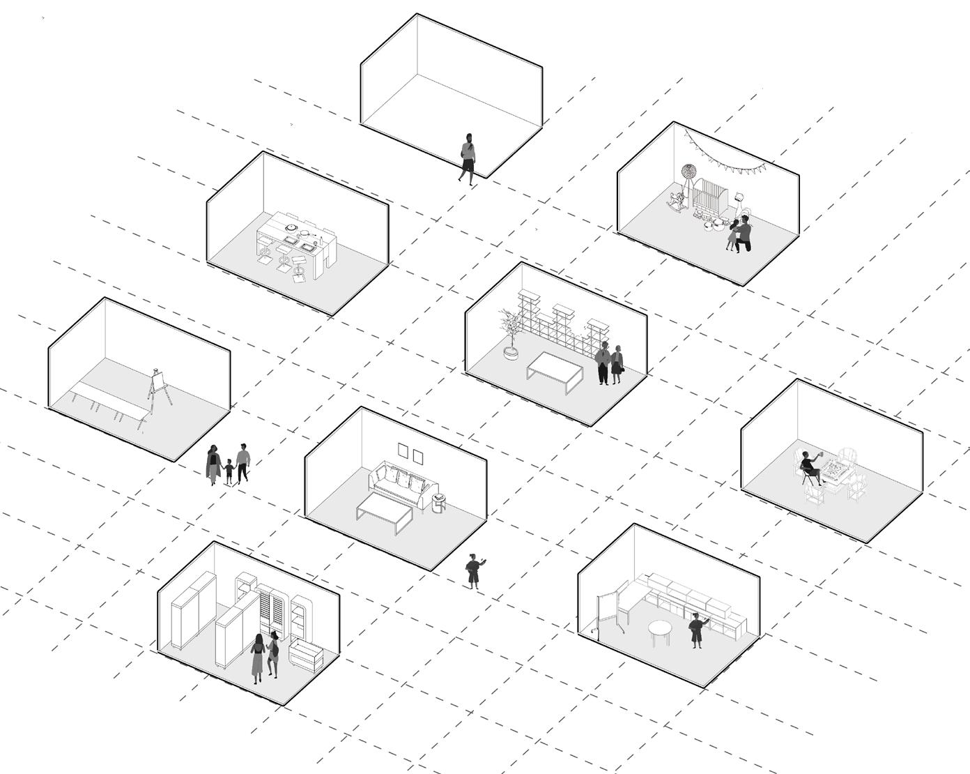 In a crowded city this building could be constructed and applied widely in order to save the land, time, converting one space with multiple possibilities when time and demand change, satisfying people's need for different functions and meanwhile making room for more city space.