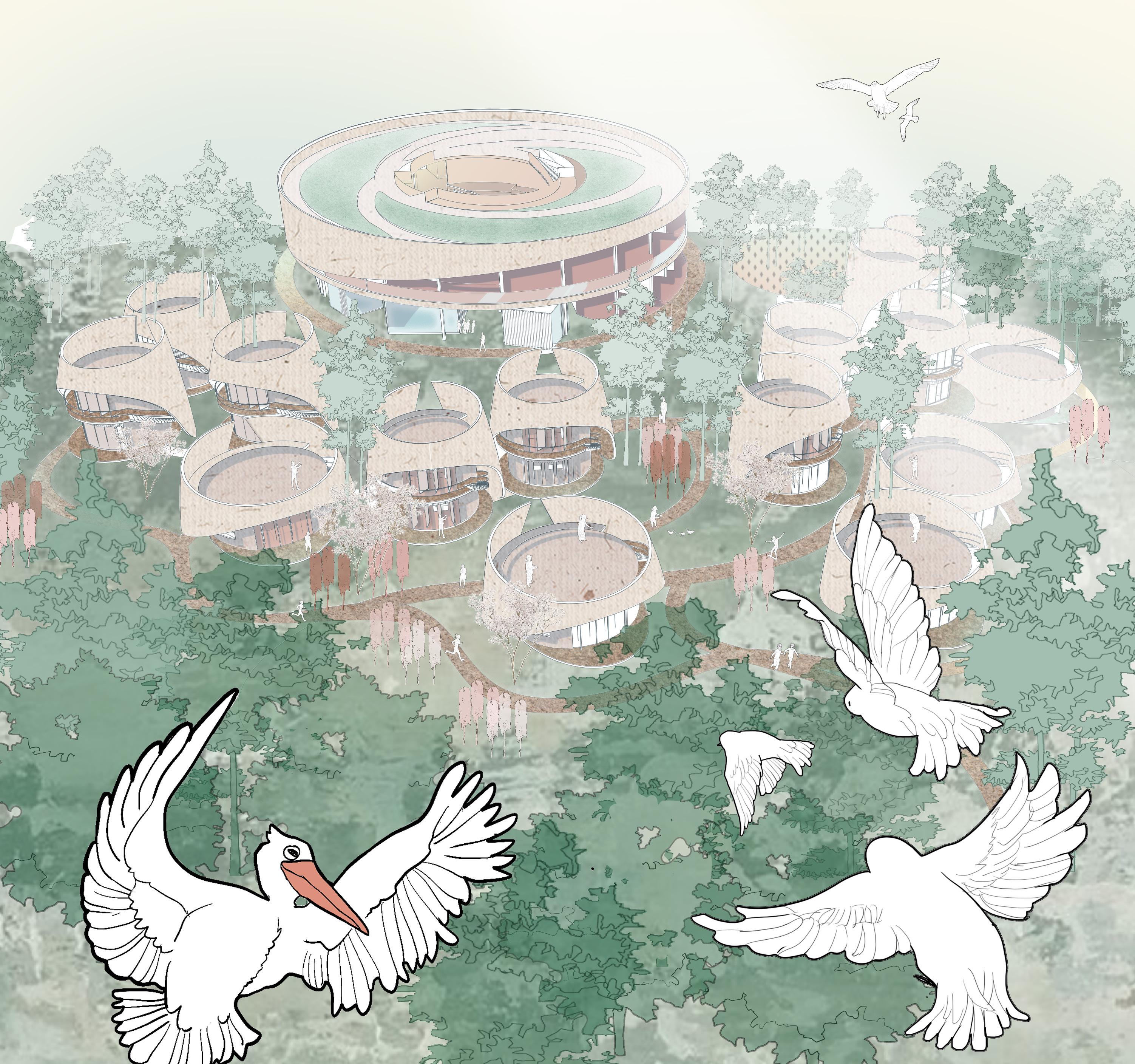 FEATURES 1. Nests built by birds refer to their habitats to live and reproduce. 2. The concept of a metaphor now (the tired bird returns to the nest) Homing: Here, people who are busy in the city, such as herons, return to the nest of nature and get physical and mental healing.