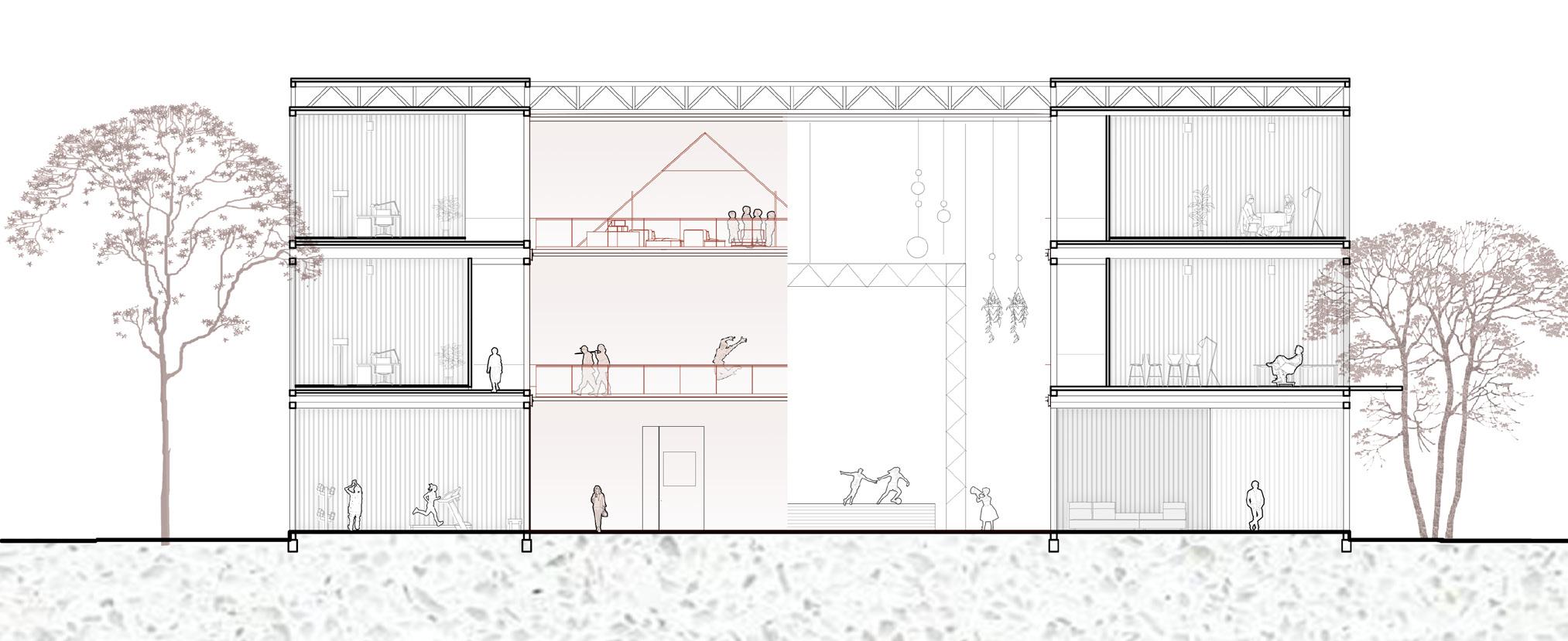 SECTION 2F PLAN ARCHITECTURAL DRAWING | space function and struction DETAILED NODE DESIGN | how to make the space moveable