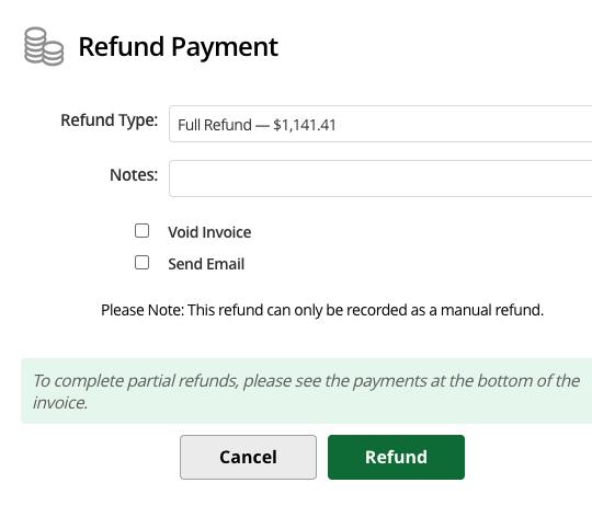 If an invoice has already been fully paid, and you issue a refund (full or partial), make sure to void the invoice. This step keeps your records accurate, stops past due payment reminders, and ensures your bookkeeping reflects what actually happened.
