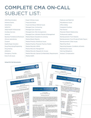 COMPLETE CMA ON-CALL SUBJECT LIST: ADA/Discrimination