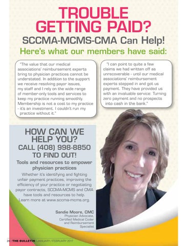 CALL (408) 998-8850 TO FIND OUT! Tools and resources to empower physician practices Whether it’s identifying and fighting unfair payment practices, improving the efficiency of your practice or negotiating payor contracts, SCCMA-MCMS and CMA have tools and resources to help. Learn more at www.sccma-mcms.org.