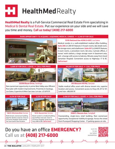 Do you have an office EMERGENCY? Call us at (408) 217-6000 28 | THE BULLETIN | JANUARY / FEBRUARY 2017