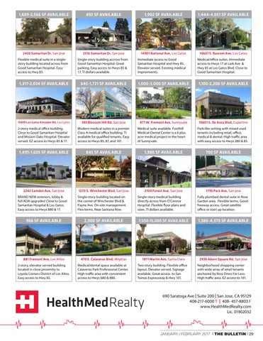 690 Saratoga Ave | Suite 200 | San Jose, CA 95129 408-217-6000 T | 408- 457-8803 F www.HealthMedRealty.com Lic. 01902032