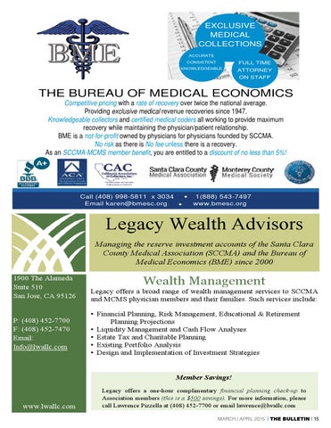 Managing the reserve investment accounts of the Santa Clara County Medical Association (SCCMA) and the Bureau of Medical Economics (BME) since 2000 1900 The Alameda Suite 510 San Jose, CA 95126 P: (408) 452-7700 F: (408) 452-7470 Email: Info@lwallc.com