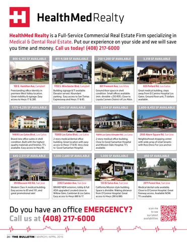 Do you have an office EMERGENCY? Call us at (408) 217-6000 24 | THE BULLETIN | MARCH / APRIL 2015