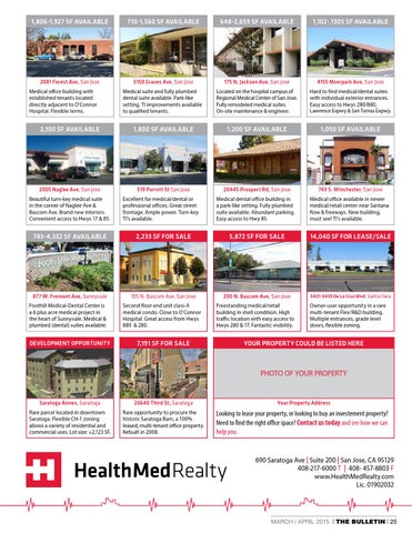 690 Saratoga Ave | Suite 200 | San Jose, CA 95129 408-217-6000 T | 408- 457-8803 F www.HealthMedRealty.com Lic. 01902032