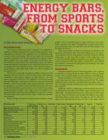 ENERGY BARS, FROM SPORTS TO SNACKS By Claire Saxton and Dr. Randy Ligh