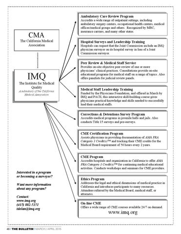 The Institute for Medical Quality A subsidiary of the California Medical Association