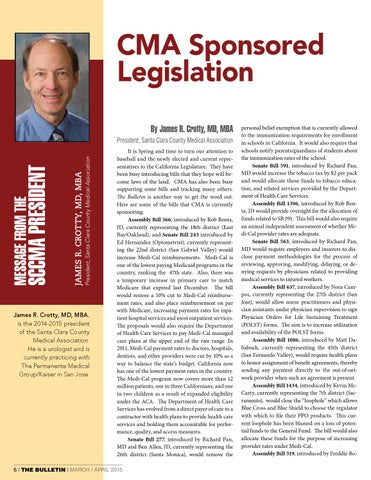 CMA Sponsored Legislation By James R. Crotty, MD, MBA President, Santa Clara County Medical Association