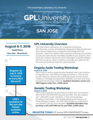 REGISTER TODAY AT www.GPLUNIVERSITY.com MAY / JUNE 2016 | THE BULLETIN | 21