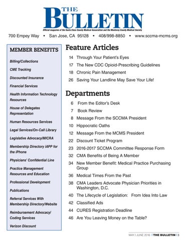 Feature Articles 14 Through Your Patient’s Eyes 17 The New CDC Opioid-Prescribing Guidelines 18 Chronic Pain Management 26 Saving Your Landline May Save Your Life!