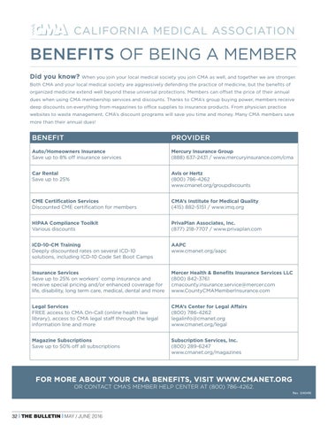FOR MORE ABOUT YOUR CMA BENEFITS, VISIT WWW.CMANET.ORG OR CONTACT CMA’S MEMBER HELP CENTER AT (800) 786-4262.