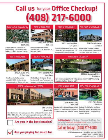 690 Saratoga Avenue | Suite 200 | San Jose, CA 95129 408.217.6000 T | 408.457.8803 F www.healthmedrealty.com | Lic# 01902032 ithout notice.