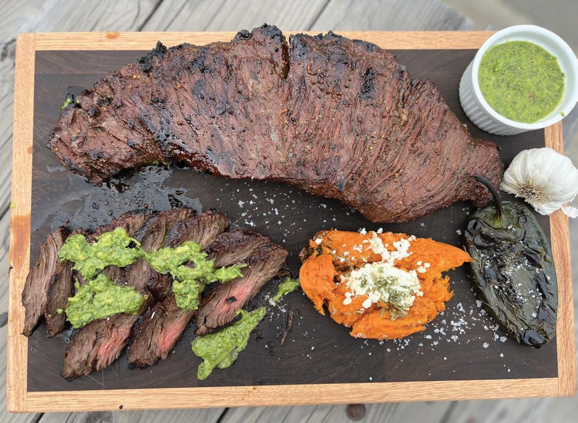 Bavette steak, with its rich flavor and very tender texture, is a perfect canvas for Double Rafter’s bold and aromatic marinade! Perfectly pair it with a vibrant chimichurri sauce. Fresh parsley, oregano, garlic, red wine vinegar, and chili flakes come together in a bright, tangy drizzle that cuts through the richness of the beef, creating a perfect balance. Cody knows the value of a great beef cut paired with fresh summer ingredients! Not to mention, Cody helped create some our staple recipes in the shop!