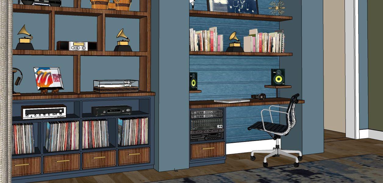 I was thrilled at the chance to design for The Ross’ because I truly relate to them, coming from a background in music, theater, and visual art. My life has been spent performing professionally as a singer (mostly of jazz and popular music) and recording and producing as an independent singer/songwriter. I even dabbled in fashion and costume design over the years and had some of my designed outfits custom-made for my performances. Naturally, I was eager to use my perspective of a life in the arts to design a space that was both functional and inspiring for the Ross Family.