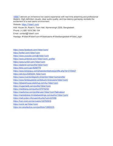 1BBET delivers an immersive live casino experience with real-time streaming and professional dealers. High-definition visuals, clear audio quality, and low-latency gameplay recreate the excitement of a real casino environment. Website: https://1bbet1.com/ Add: House 24, Road 4, Town Hall, Mymensingh 2200, Bangladesh Phone: (+) 880 1819 396 154 Email: contact@1bbet1.com Hastags: #1bbet #1bbet1com #1bbetcasino #1bbetbangladesh #1bbet_login