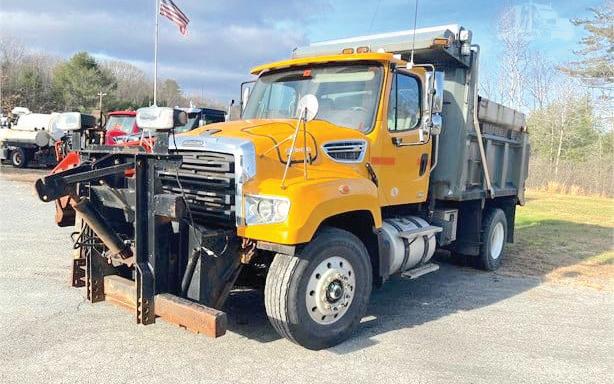 FREIGHTLINER DUMP PLOW TRUCK. 370 Hp. Cummins, Automatic, 42,020 GVW, Cruise, Pwr Windows/Locks, Htd Mirrors. 11’ Viking Cives Steel Material Handling Body, State Inspected, Serviced. Front & Wing Plow, 61,658 Miles,