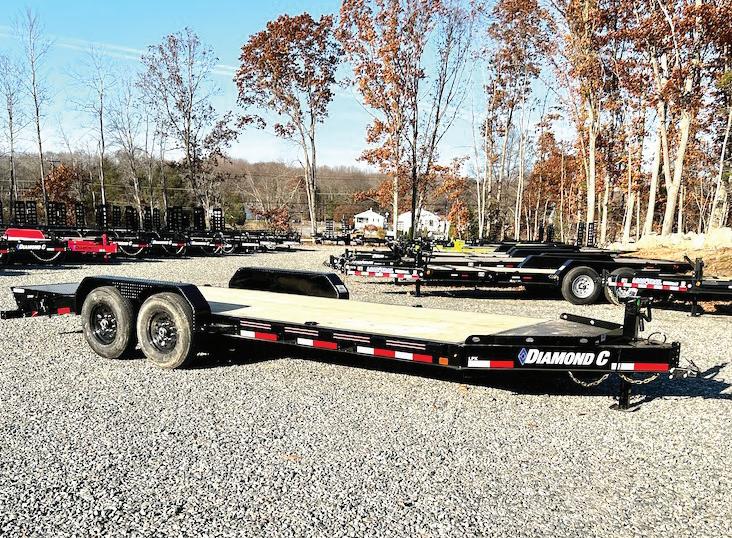 TRAILER. 22’ Flat Deck, 6’ Beaver Tail, 5 1/2’ Ramps, Air Tilt, With Air Powered Ramps, Pintle Hook, 2 Axle, Complete New Suspension, New Brakes, 23,182 GVW, One Owner, Original Paint, Call For More Information.