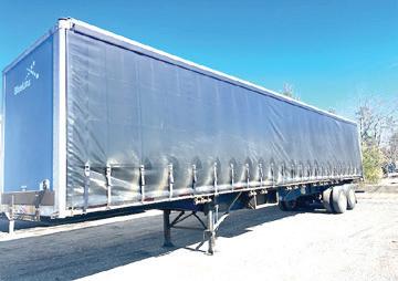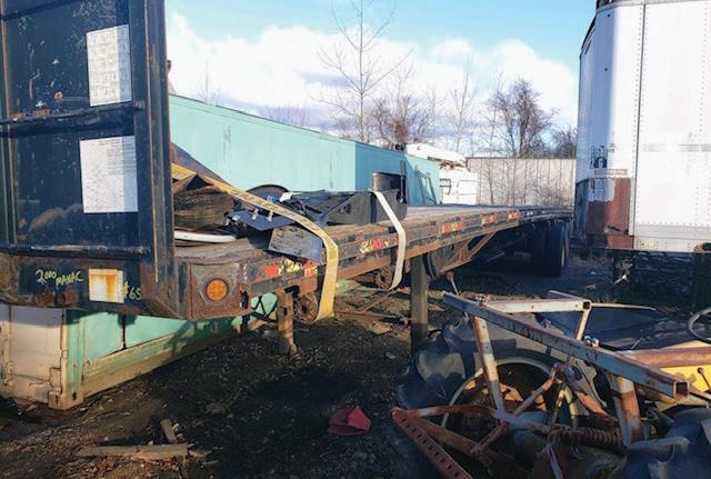 2004 BENSON 48’ ALUMINUM FLAT BED. Air Lift Axle #1, 75% Brakes, 24.5 Rubber, Conestoga Cover, 14 Ratchets, Chains & Binders, Needs Nothing, Very Good Condition, $26,900.