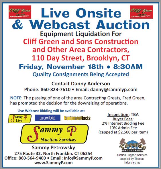 11 ISSUE 44-45 • NOVEMBER 2ND, 2022 WWW.TRUCKANDEQUIPMENTPOST.COM TRUCK AND EQUIPMENT POST Daryl Houle daryl.h@jeffmartinauctioneers.com 419.913.7173 844.450.6200 | JeffMartinAuctioneers.com LIVE & ONLINELIVE PUBLIC AUCTION FEATURING CONSTRUCTION EQUIPMENT, TRUCKS, TRAILERS AND MORE!FEATURING CONSTRUCTION TRAILERS AND MORE! SATURDAY, NOV. 5TH @ 9AM ESTNOV. 5TH @ 9AM EST 1560 ROUTE 106 N. LOUDON , NH 033071560 ROUTE 106 N. LOUDON , NH 03307 844 450 6200 JeffM NH - RSA 311-B Doug Ryan doug.r@jeffmartinauctioneers.com 603.491.6159