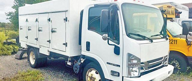 2014 ISUZU NPR HD VAN BODY w/Aluminum Power Rail Gate. 6L V8, Auto, AC, 14,500 GVW, 103K, One Owner, Excellent Condition, $24,300. (Will Separate) (Others Available Starting at $8,400.)