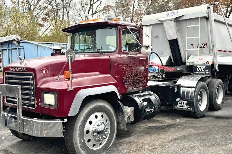 1998 MACK R-600: 44 REARS, 8LL TRANS, 11 X 24.5 TIRES, WET LINE. GOOD RUNNER $26,000.00.