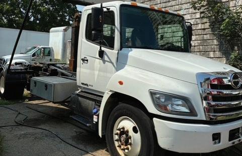 2005 HINO 268 HOOKLIFT. 20K Lb., Galbreath Hooklift, Auto, 33,000 GVW Factory Derated to 26,000 GVW, No CDL Needed, Pioneer Electric Tarp, AC, In/Out Controls, Air Ride Seat, CD Stereo, Alum Storage Box, Chrome Bumper, New Turbo Charger, 189,721 Miles, Strong Running Truck, $39,900. 781-414-0635