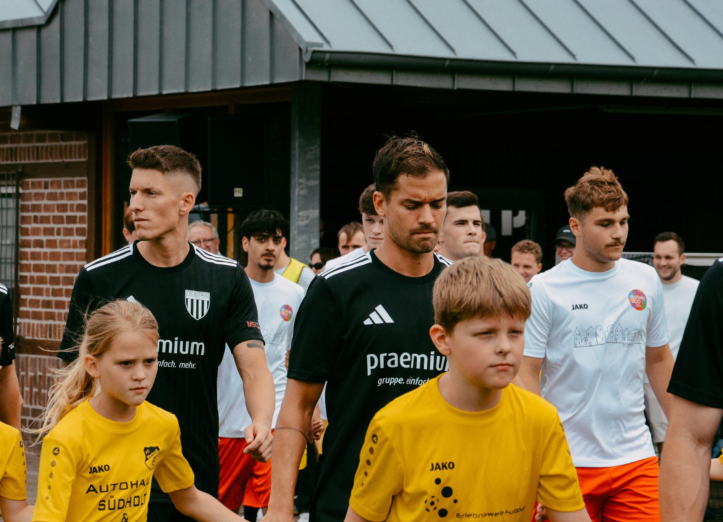 Trotz der sportlichen Deutlichkeit stand beim Testspiel der gute Zweck im Vordergrund. Die Einnahmen des Tages kommen erneut der Kinderkrebsstation der Universitätsklinik Münster zugute –eine Herzensangelegenheit für alle Beteiligten. Die Stadtauswahl aus Borken, trainiert von Tim Köster, setzte sich aus Spielerinnen und Spielern lokaler Vereine zusammen und zeigte großen Einsatz gegen den klassenhöheren Gegner. Am Montag ging es dann für fünf Tage
