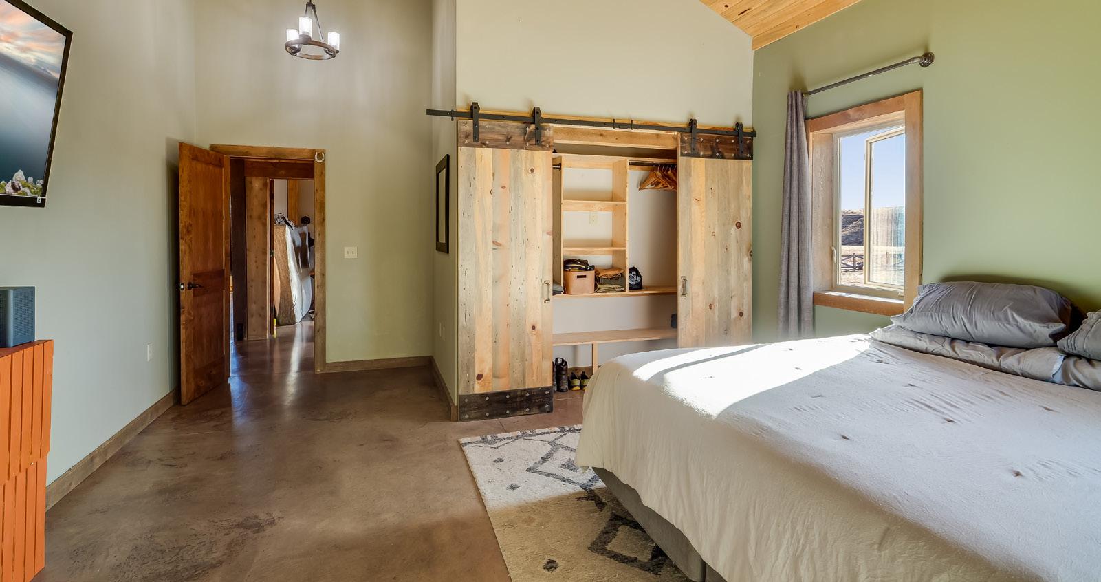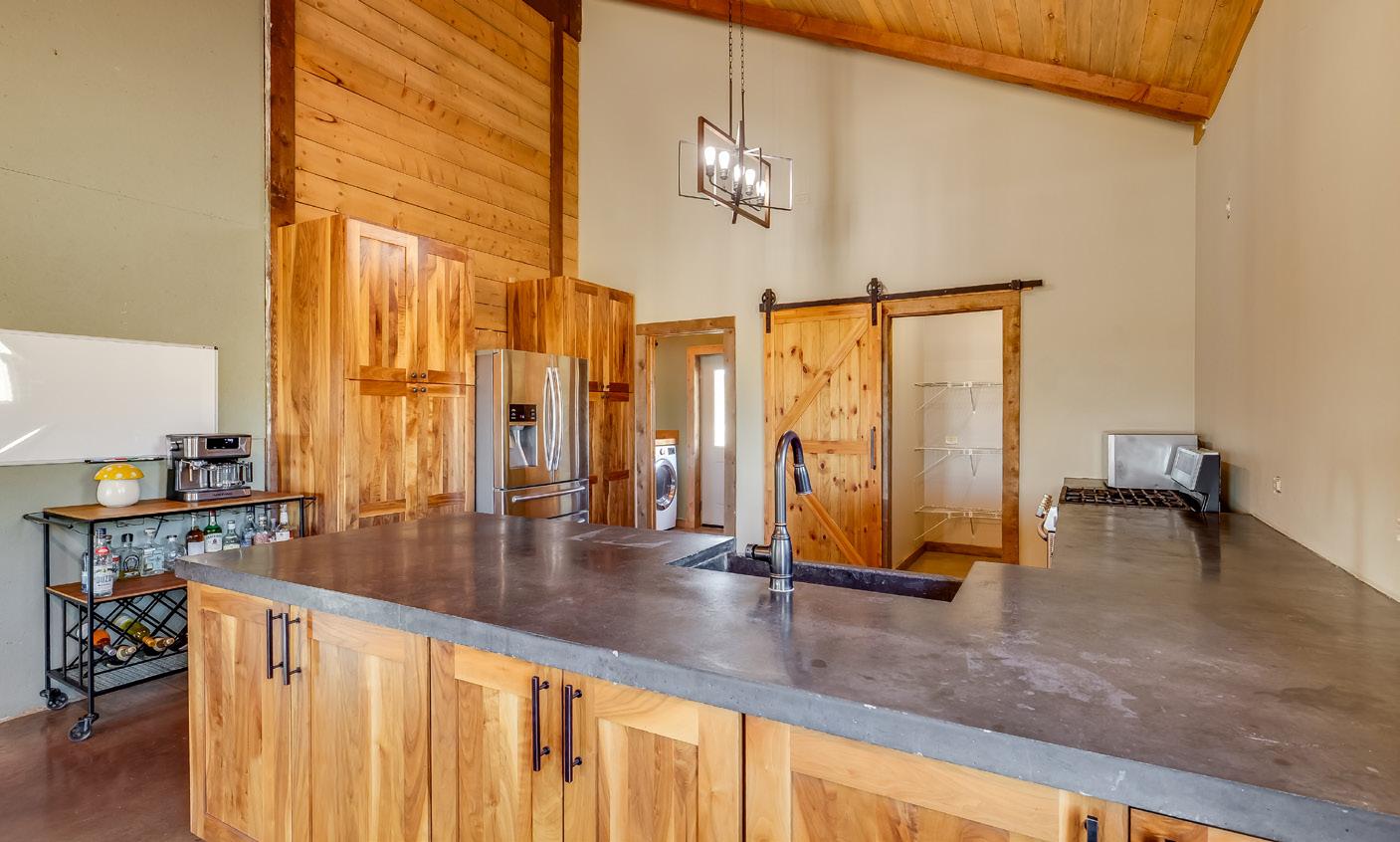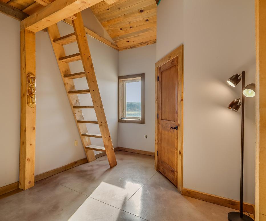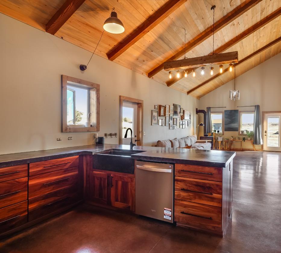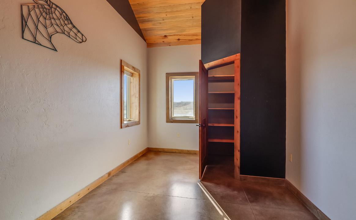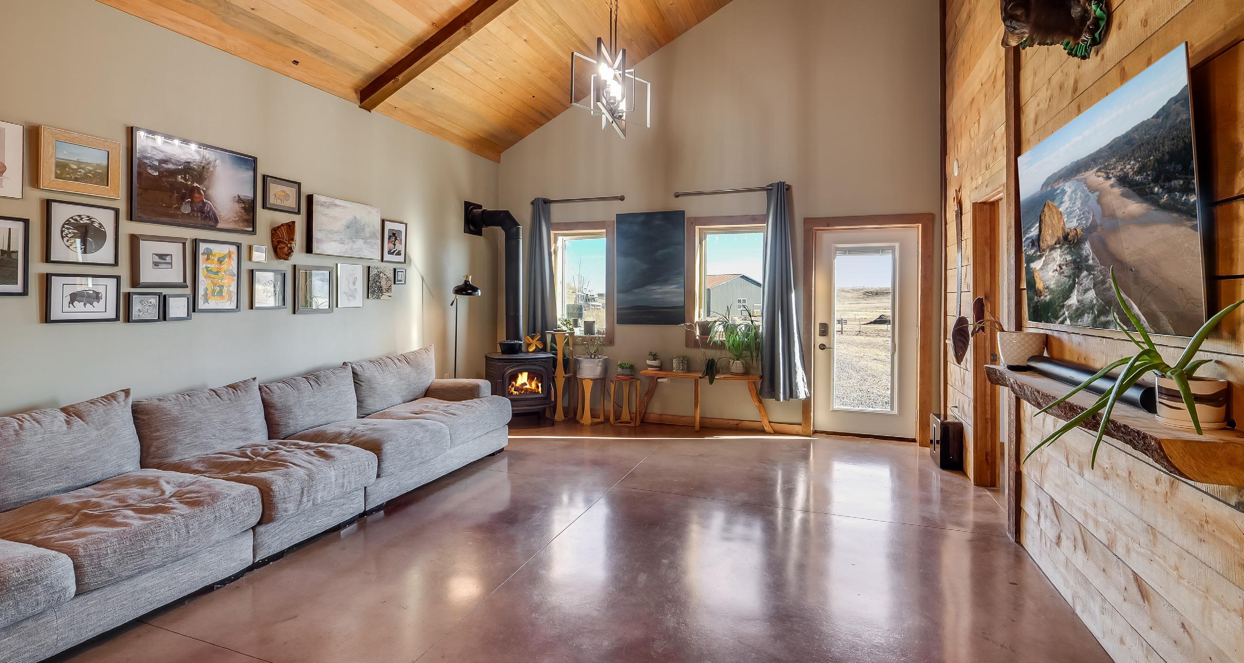 Set on 40.58 private acres in rural Wyoming, this modern rustic home blends intentional design, functional upgrades, and authentic outdoor living. The 1,617-square-foot residence features radiant-heated concrete floors, 18-foot ceilings, and a Blaze King wood-burning fireplace for efficient comfort year-round. A durable, well-appointed kitchen includes custom cabinetry, slab concrete counters, stainless appliances, and a generous pantry with a sliding barn door. The primary suite offers sweeping views, barn-door closets, and a spacious bath, complemented by additional bedrooms with walk-in closets and flexible loft or storage space. Finished with beetle kill shiplap ceilings, ample attic storage, and a landscaped yard with sprinklers, the home perfectly captures modern comfort and Wyoming character.