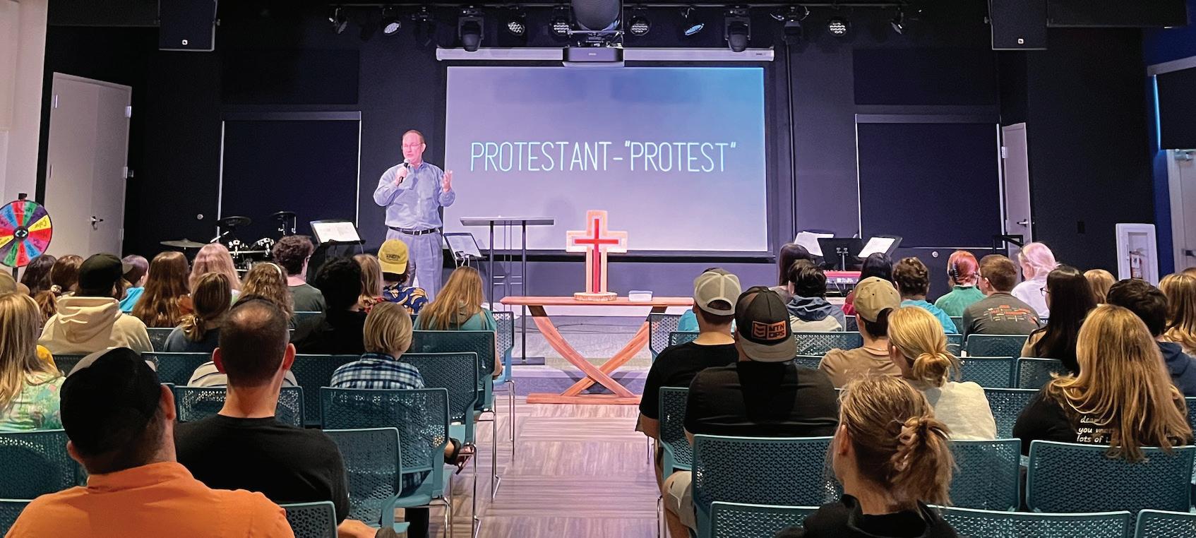 “I teach other preachers this … ‘A mist in the pulpit is a fog in the pew,’” Reeb said. He did his doctoral dissertation on sermon form and structure, “how you form a message, rhetorically and persuasively,” he said. Reeb primarily uses a hybrid preaching method he calls AGAPE, which combines aspects of all the approaches – deductive, three point, inductive, expository, etc.