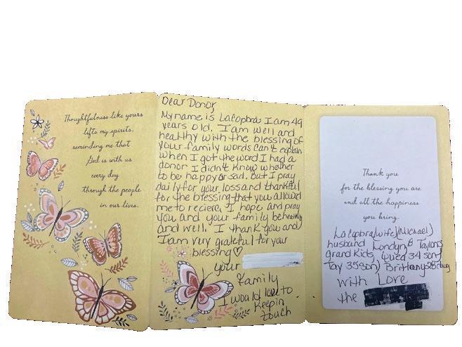 “When I got the word I had a donor, I didn’t know whether to be happy or sad,” Holloway wrote in a card to Peddycoart’s family, a year after her transplant. “I pray daily for your loss and (I’m) thankful for the blessing you allowed me to receive.”