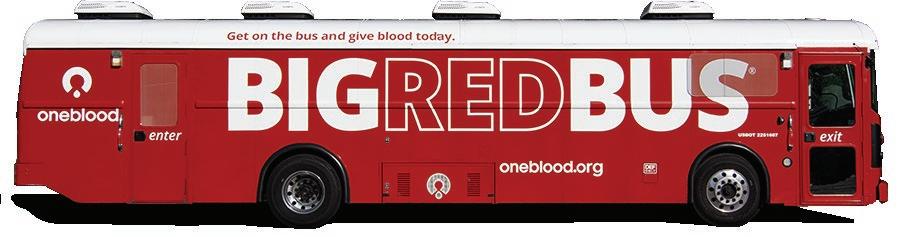 OneBlood’s Big Red Bus is on campus for blood donations on the second Sunday of every other month from 8:30am12:30pm.