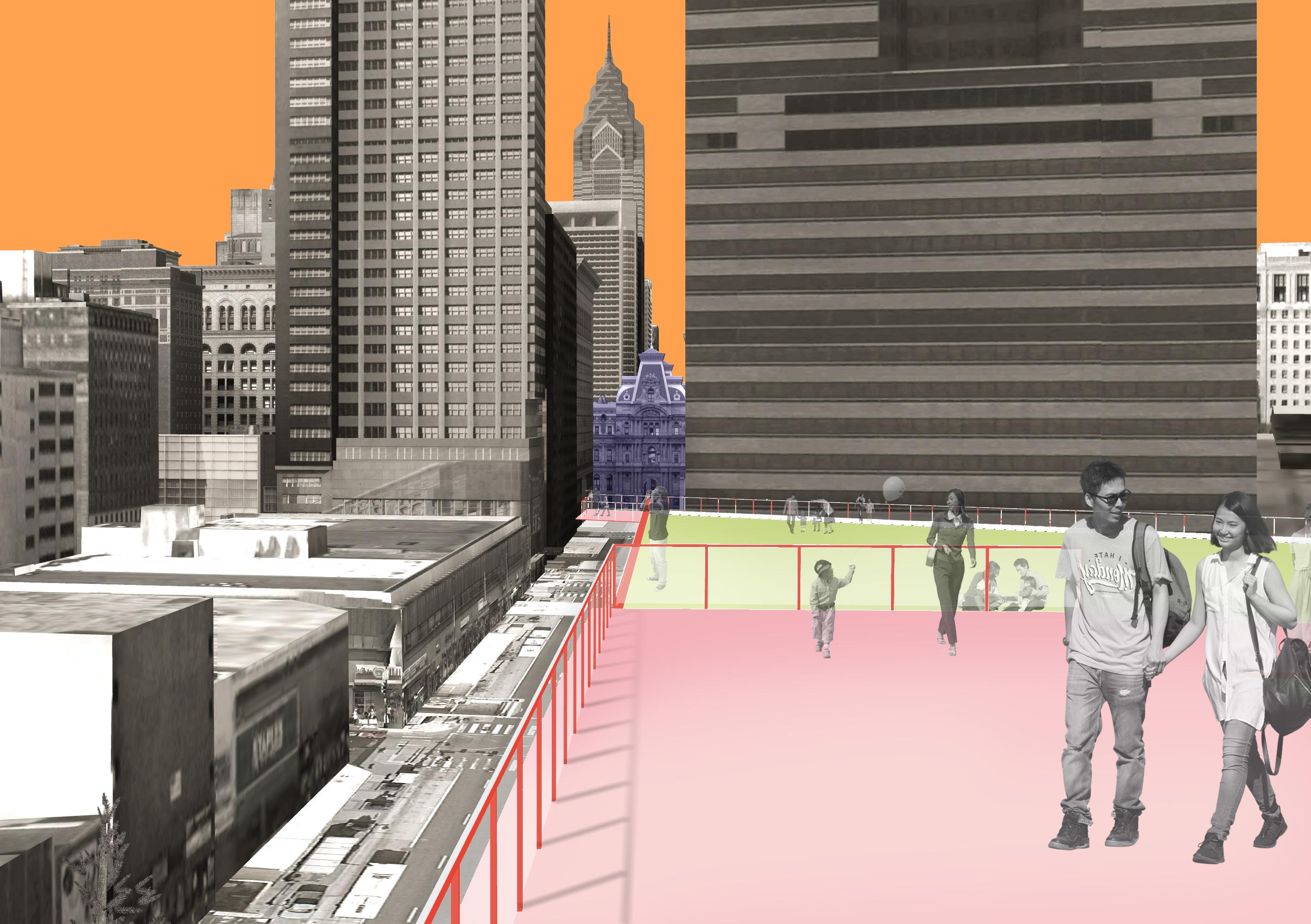 The design opens the ground floor of Philadelphia Fashion District, a giant shopping mall blocking Chinatown from the Market Street, Philadelphia’s main axis. By introducing local market into Fashion District and turning the rooftop into public realm, the project strengthen Chinatown physically and socially, giving resident the right to the city and making their presence stronger.