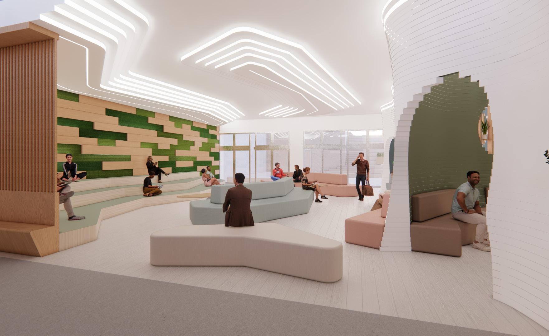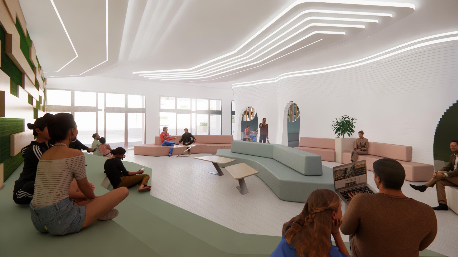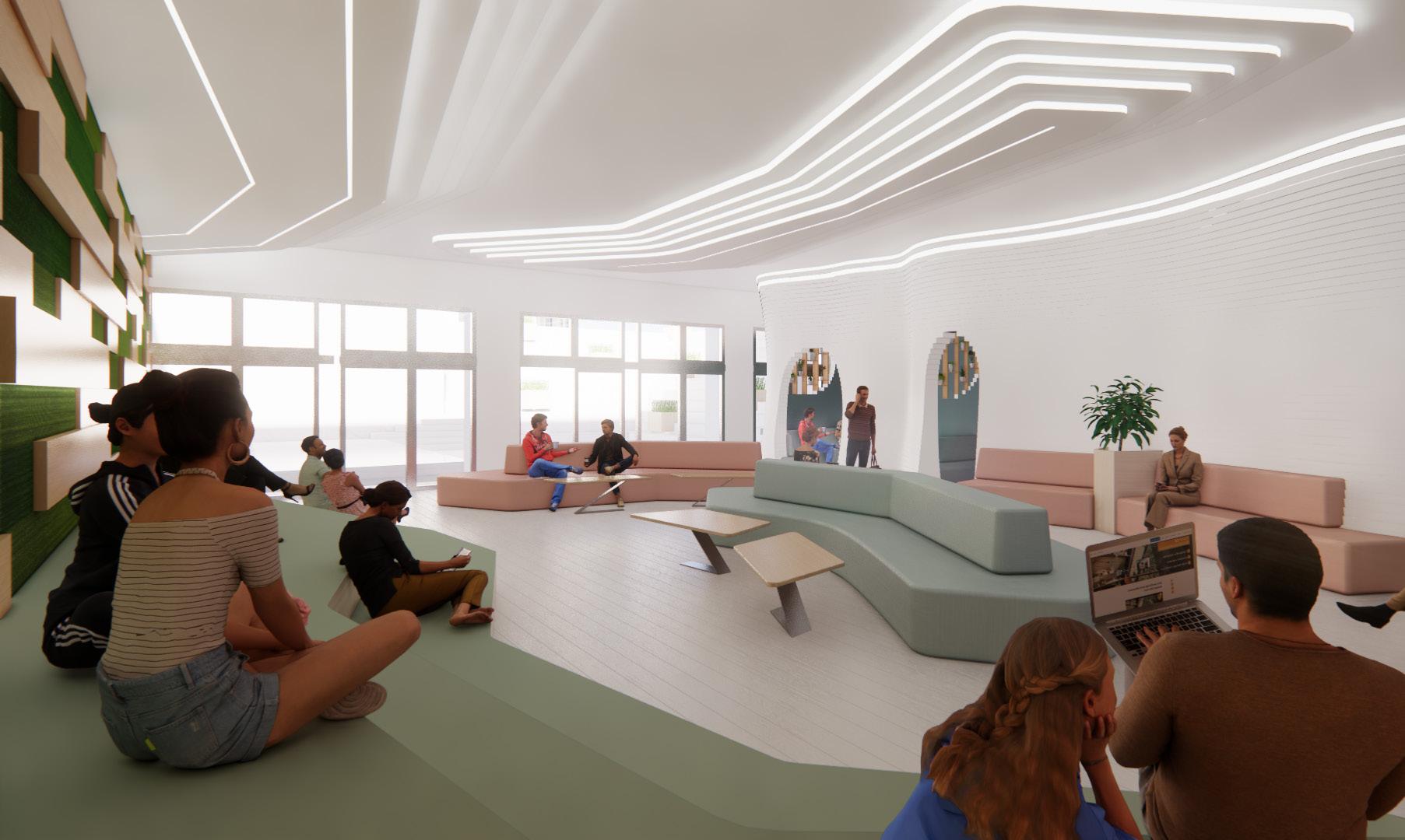這種空間鼓勵多元文化互動,促進創意靈感,並融合舒 適自在的氛圍,提供一個開放、友善、多功能的場所, 以促進人際互動和社交互動。