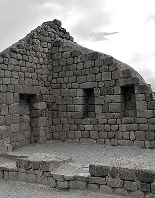 Las construcciones eran complejos que era de base de piedras colocadas por las hiladas inmensas caracteres, por esta razón hay varios que son símbolos de montañas y corrientes. en la parte de edificaciones de casas, en sus techos podremos ubicar dos fuentes de agua