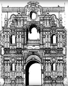 Se caracteriza por exceso de ornamentación en su fachada, como columnas retorcidas o onduladas que siempre se mantenía de curvas que eran adornadas con ángeles, plantas o frutos