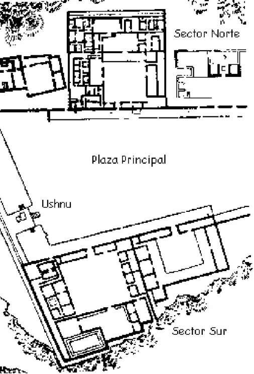3 USHNU: su forma tenia forma pecu iar siendo una estructural trunca configurado para la superposición de plataformas rectangulares; esto se utilizaba para rituales que tiene que ver con el agua, teniendo alguna pirámide formado por cinco plataformas construido todo por piedra