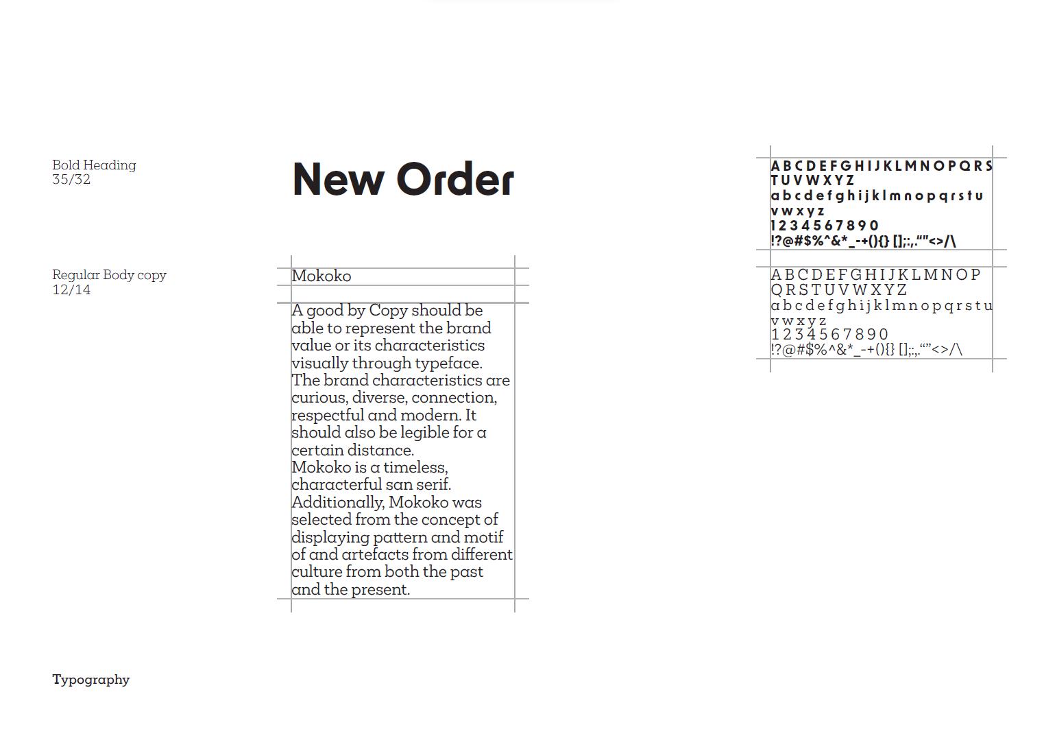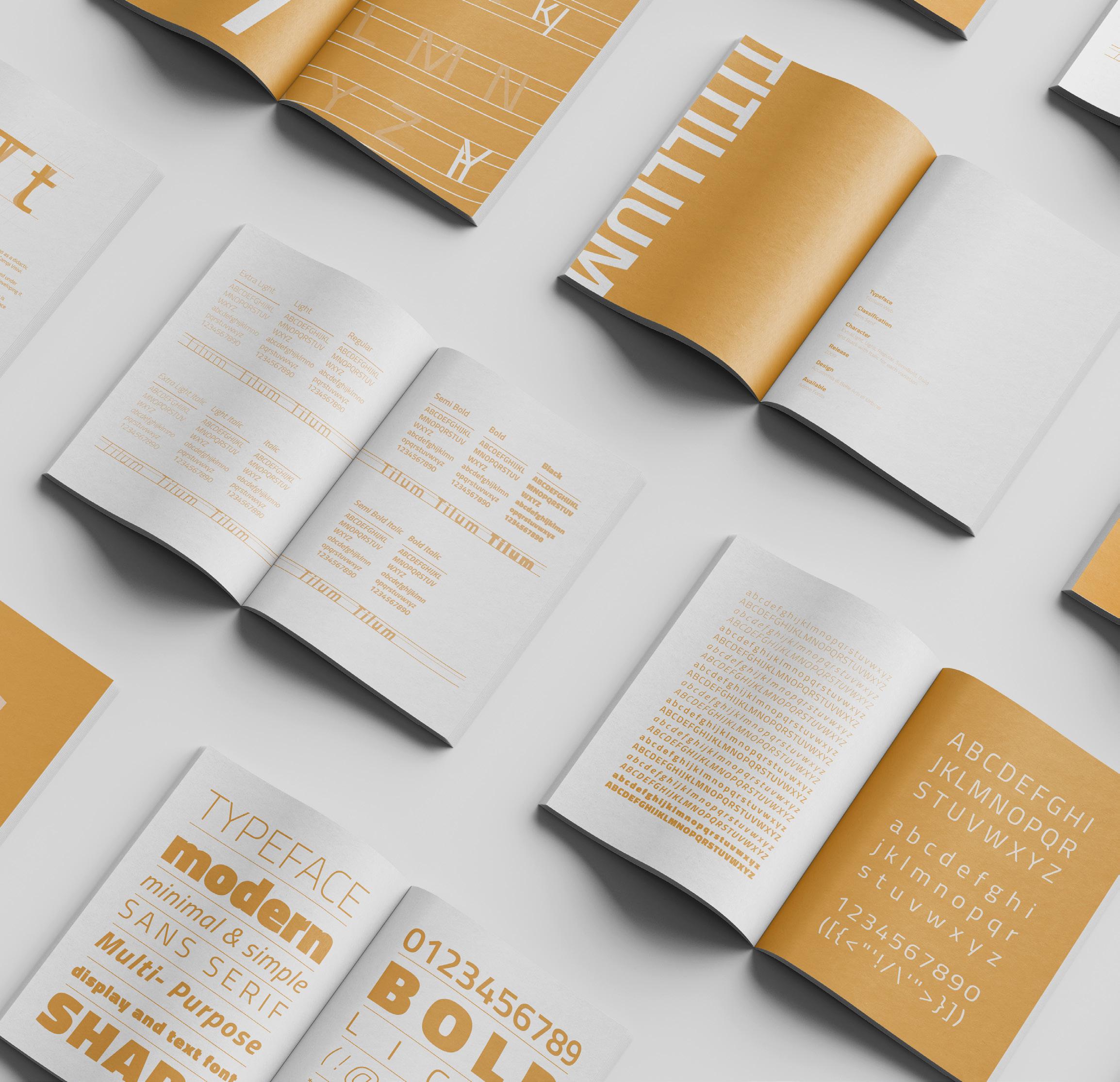 Design a “type specimen” booklet sheet that include the following information: