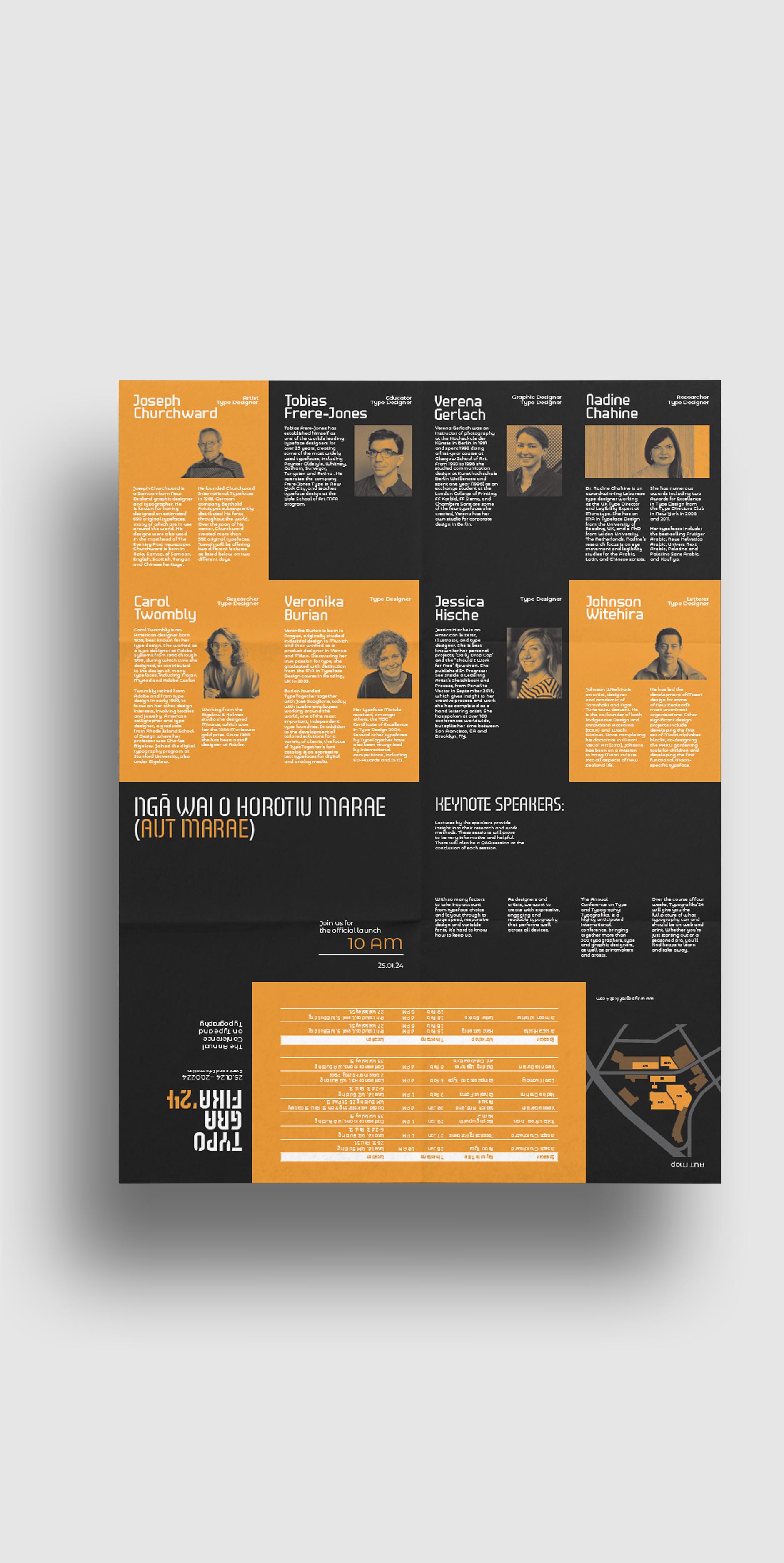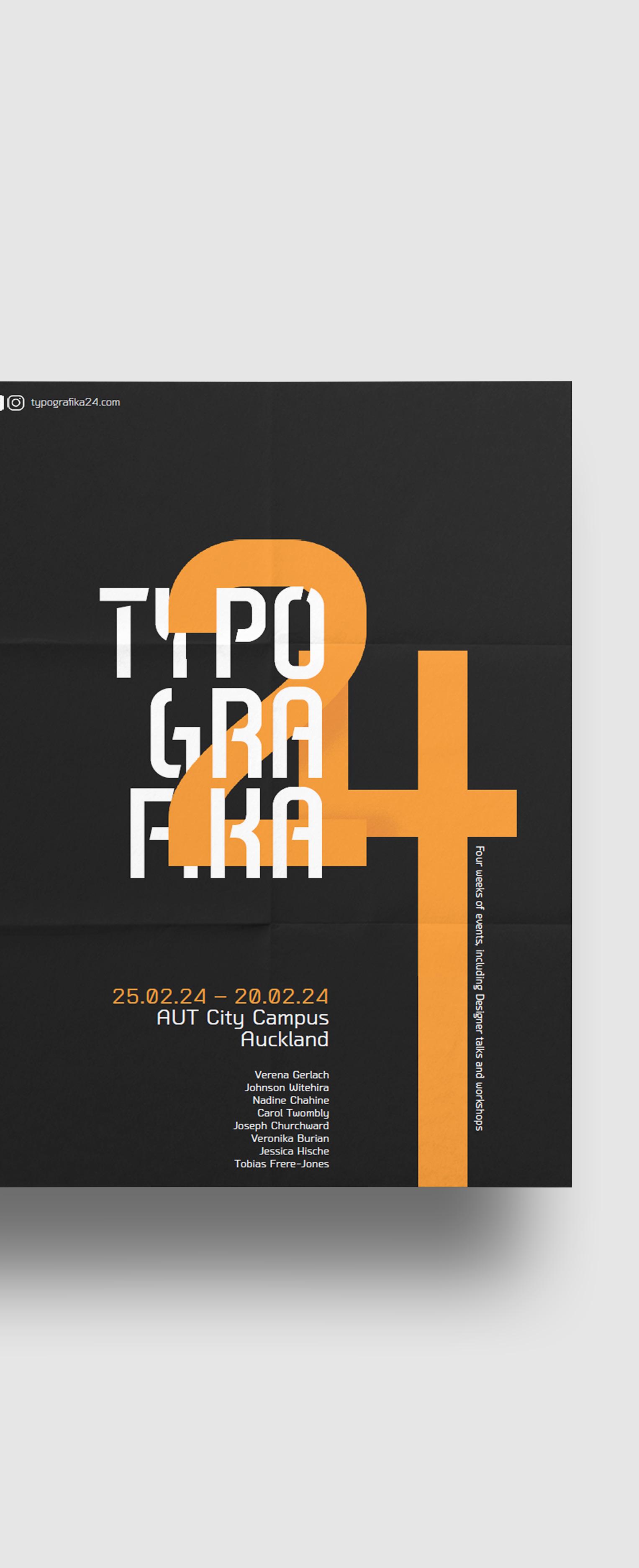 Create visually appealing and informative marketing materials for the Typografika’24 Annual Conference event on Type and Typography at AUT. The outcome would be an A3 poster and a brochure.