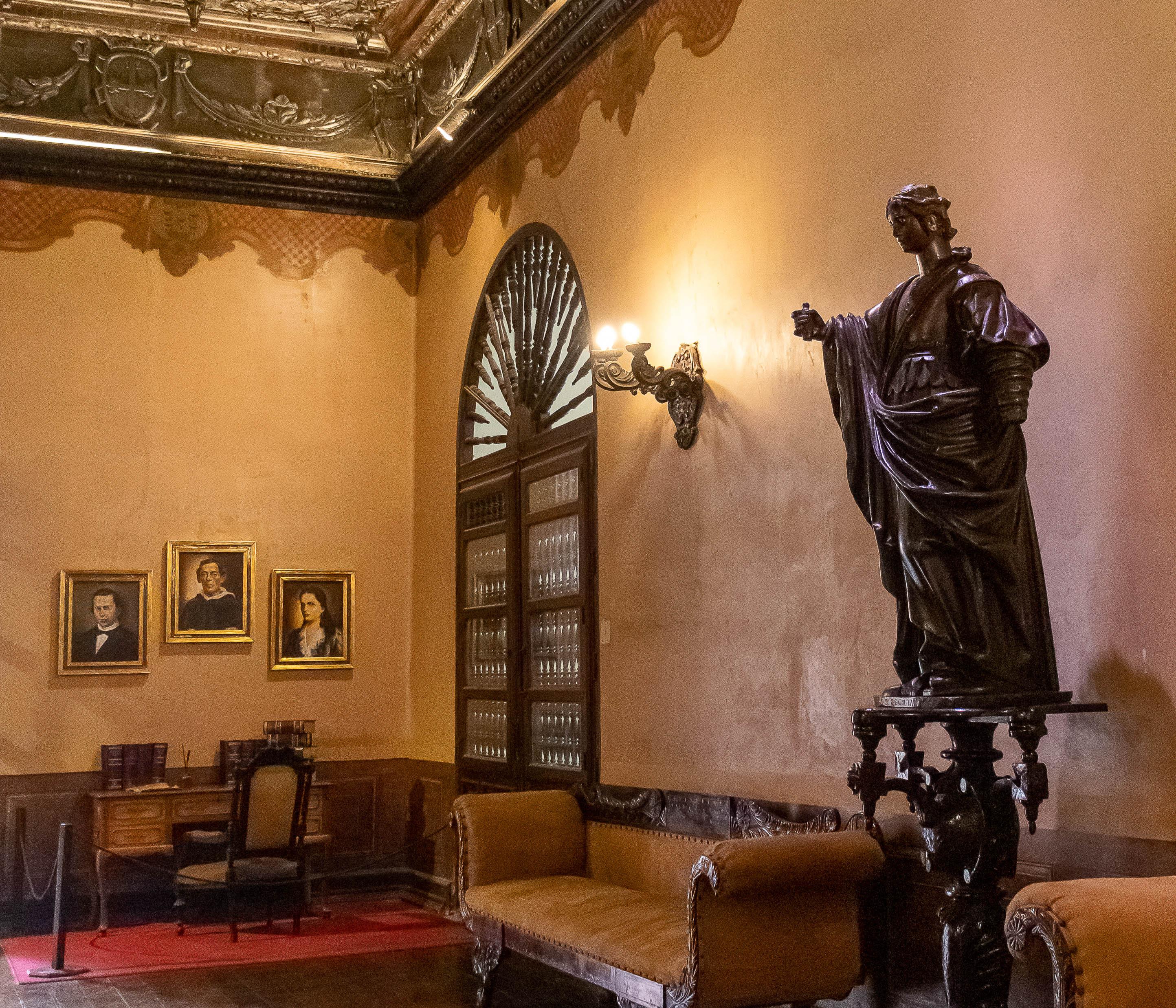 El primer Claustro está decorado con Azulejos Sevillanos de los años 1604, 1606 y 1620, los cuales fueron enviados desde el taller Garrido desde España.